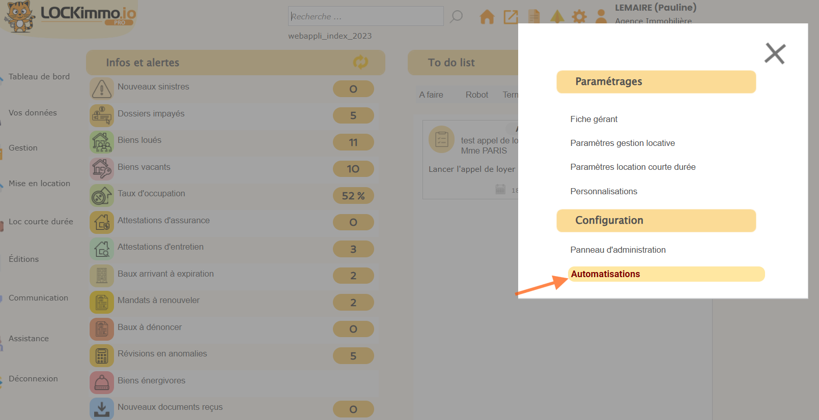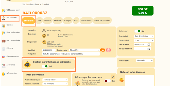 La fonctionnalité Gestion par IA permet uniquement d’automatiser la génération et l’envoi des appels de loyers.