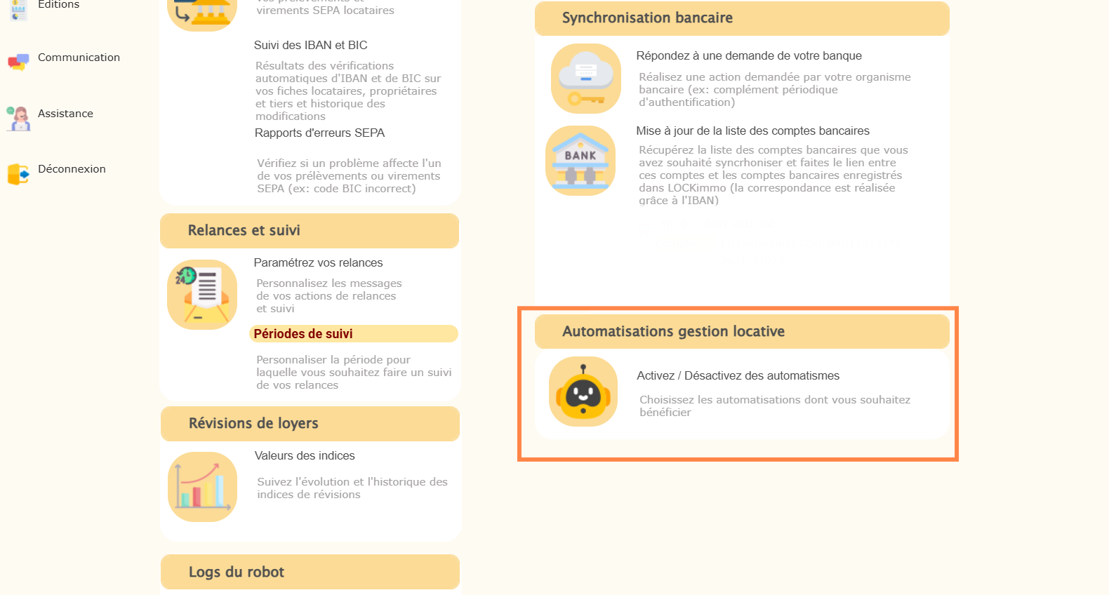 Vous y trouverez toutes les automatisations disponibles, que vous pouvez ajuster selon vos besoins de gestion.