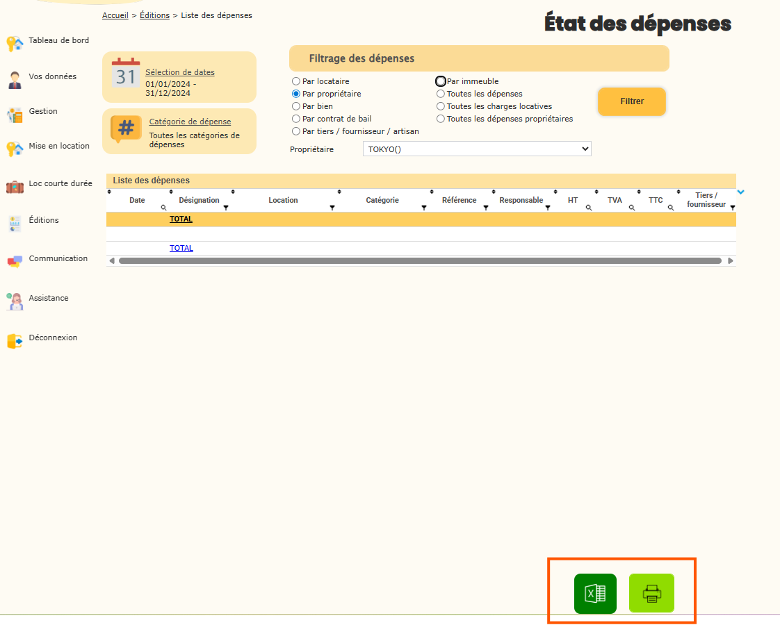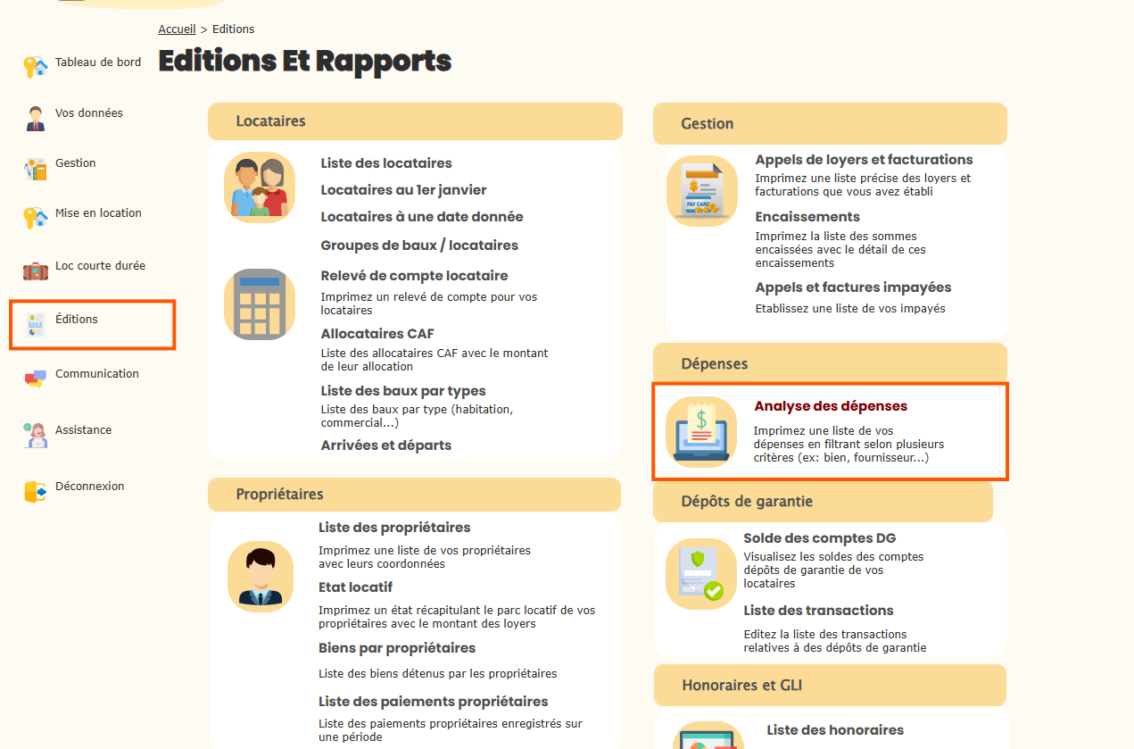 Grâce à l’outil de gestion locative, vous avez la possibilité de générer et d’imprimer un état détaillé des dépenses en utilisant différents filtres. Cette fonctionnalité vous permet d’obtenir une vision claire et précise, adaptée à vos besoins, que ce soit par bien, par fournisseur, ou par catégorie de charges. Dans cet article, nous vous guidons pas à pas pour éditer la liste de vos dépenses et tirer pleinement profit des options de filtrage.