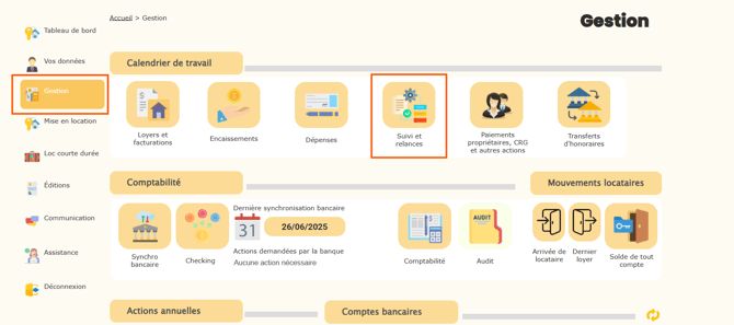 Rendez-vous ensuite dans la rubrique Suivi et relances.