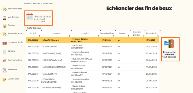 Mettre à jour régulièrement vos données : assurez-vous que toutes les dates de fin de bail sont correctement saisies dans le logiciel pour obtenir une liste fiable.