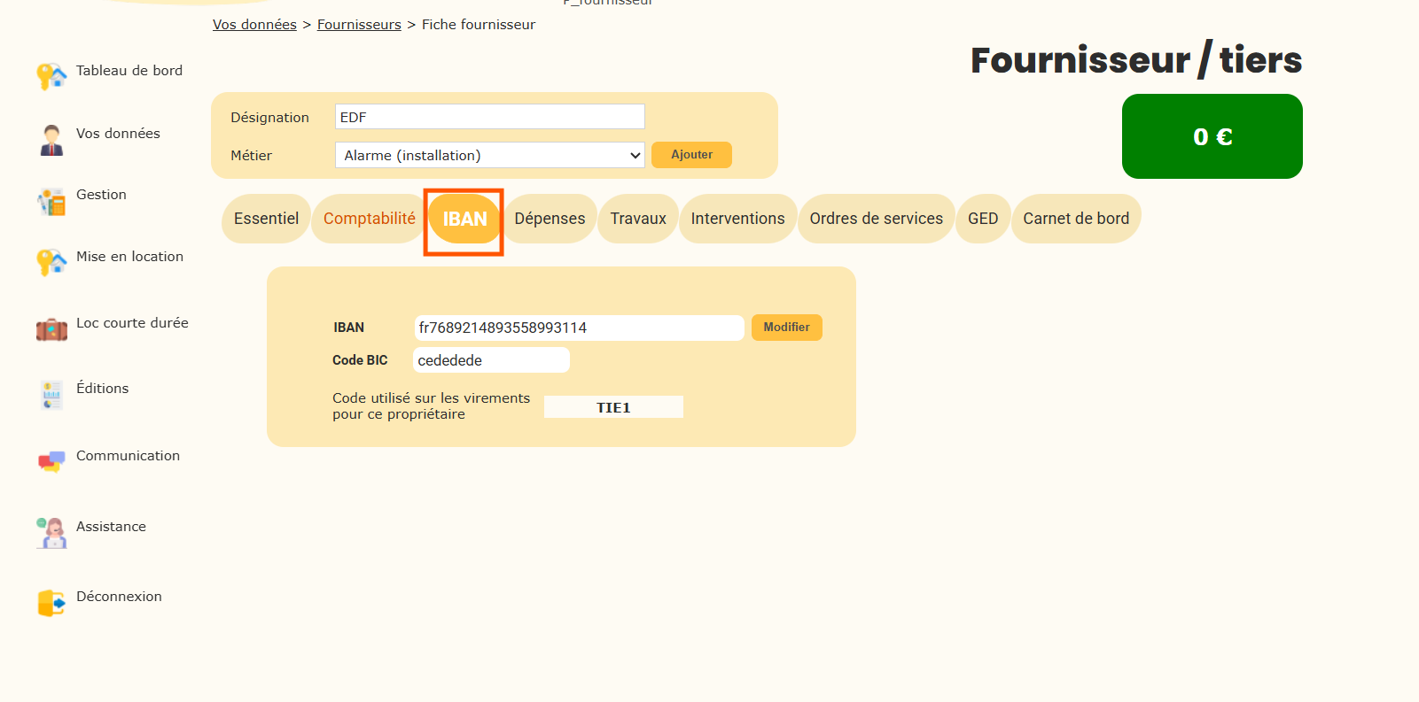 Modifiez les informations souhaitées (IBAN, BIC,…).