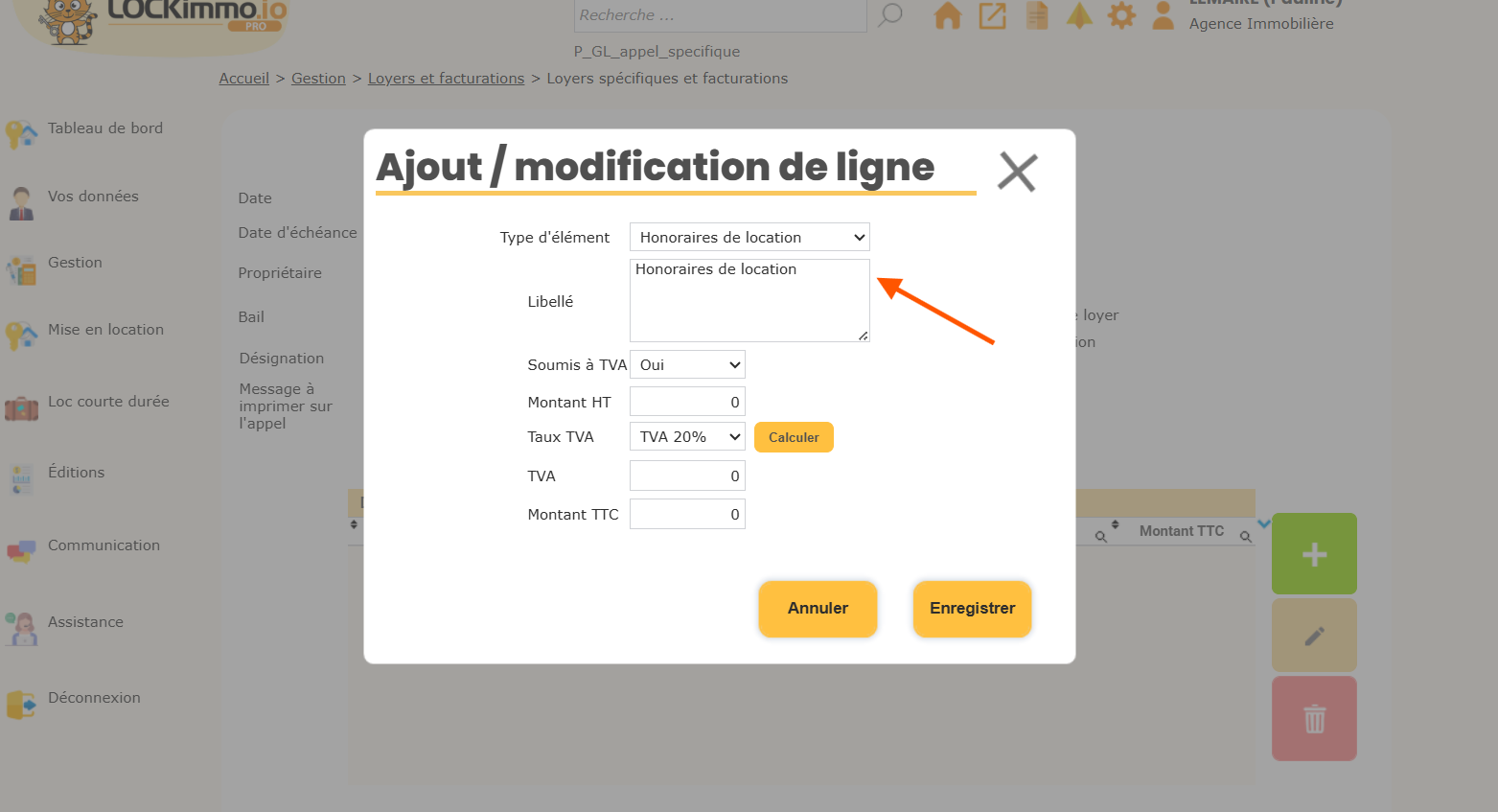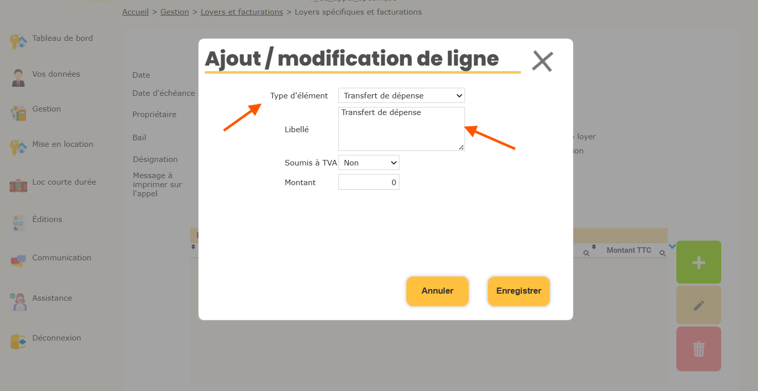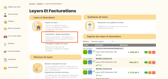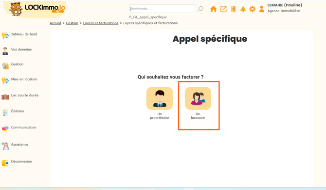 Rendez-vous dans :Gestion > Loyers et Facturations > Facturations / Appels spécifiques -