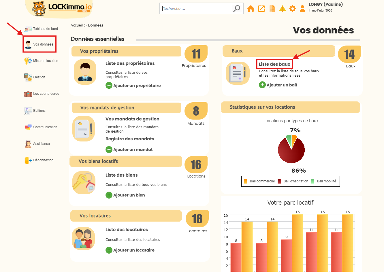 Rendez-vous dans le menu « Vos données », puis cliquez sur « Liste des baux ».
