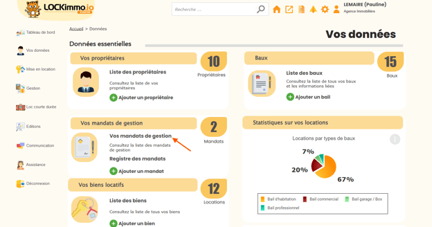 Pour archiver un mandat de gestion, il faut aller dans le menu Vos données > Vos mandats de gestion