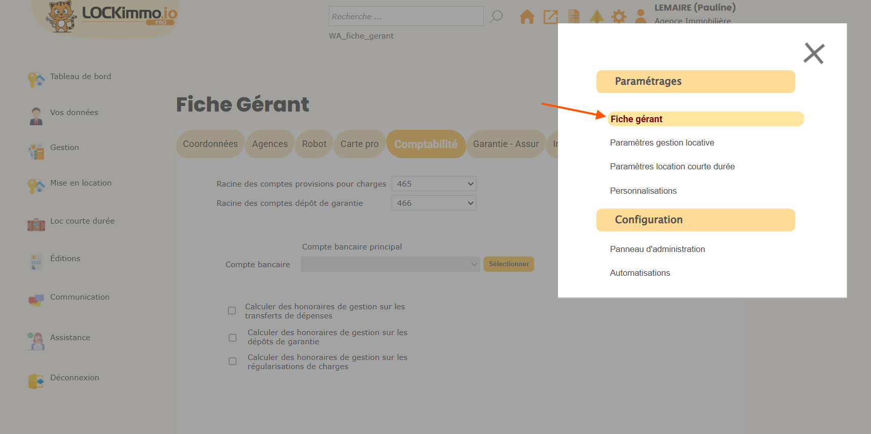 Dans la fiche Gérant, accédez à l’onglet Comptabilité.