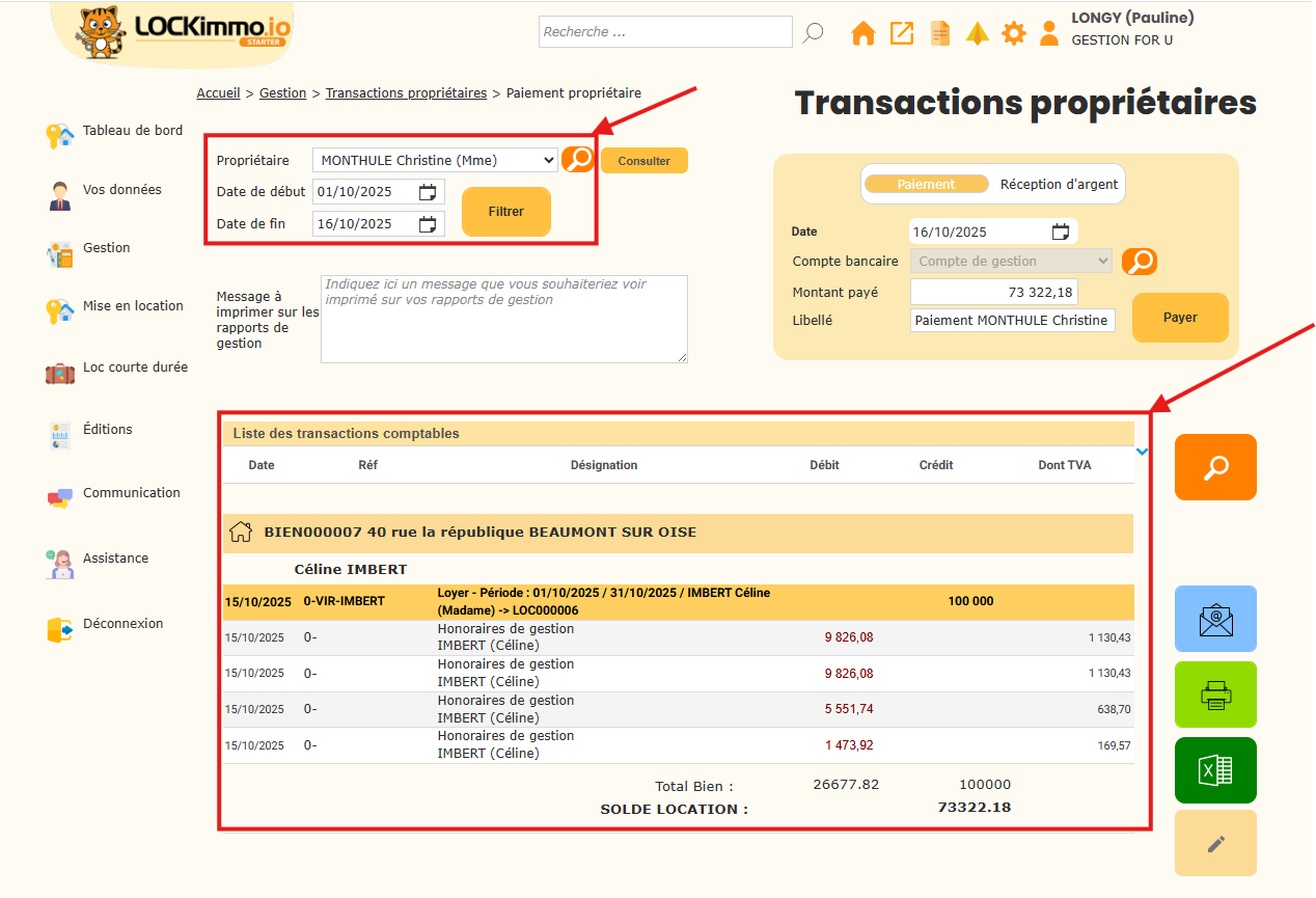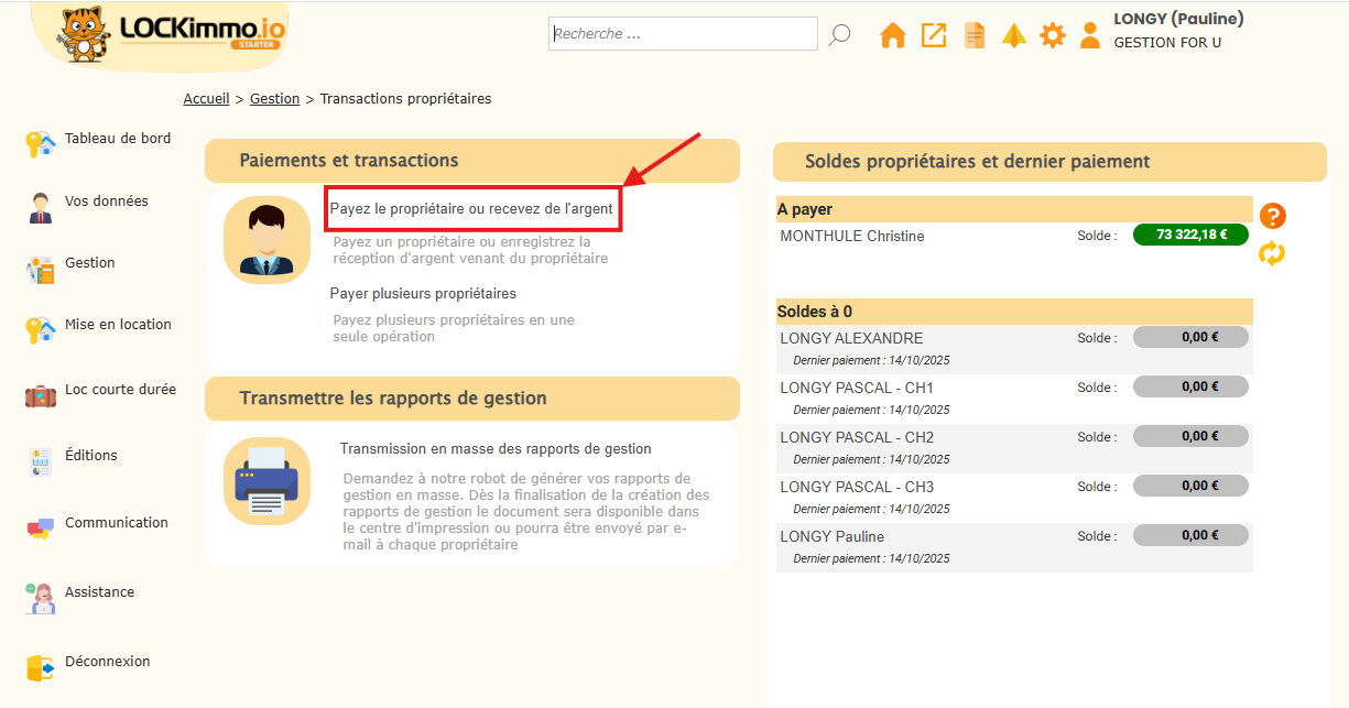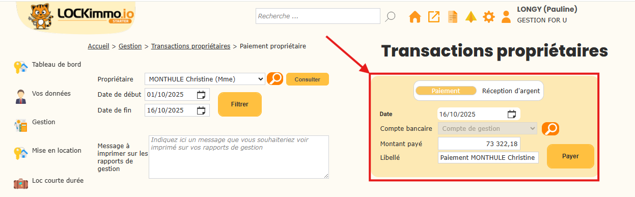 Voici les étapes à suivre pour réaliser un paiement propriétaire dans LOCKimmo :