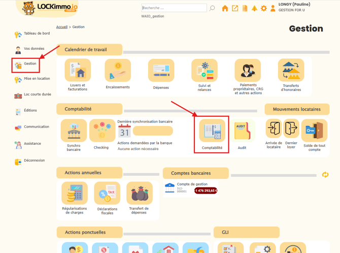 Allez dans le menu Gestion > Comptabilité.