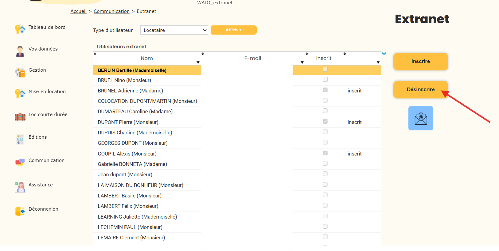 Sélectionnez le locataire ou le propriétaire concerné dans la liste.