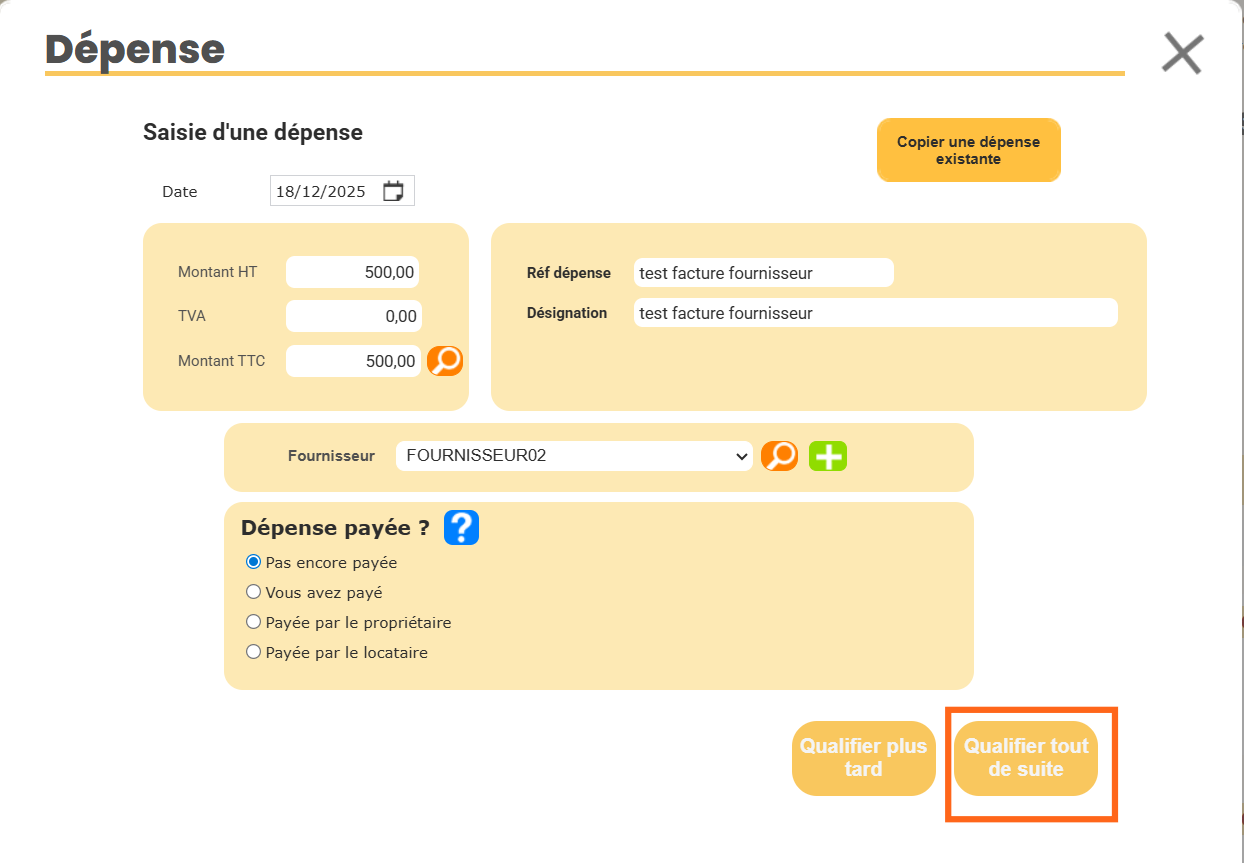 Cette procédure permet de suivre correctement les dépenses sur le compte propriétaire et de préparer le paiement fournisseur, tout en conservant une traçabilité claire dans le logiciel.
