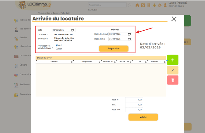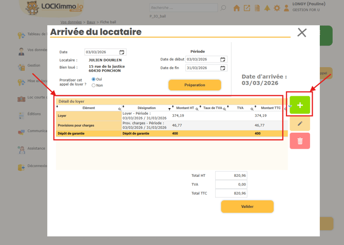 L'édition du premier appel de loyer sur LOCKimmo est simplifiée pour vous permettre d'intégrer rapidement tous les frais d'entrée. Voici les étapes à suivre :