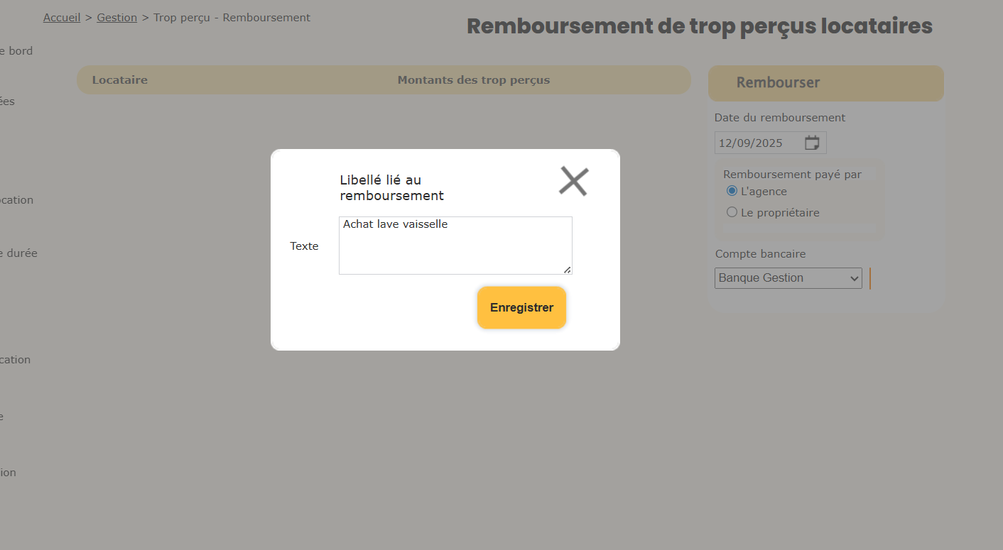 Rendez-vous dans le menu Gestion > Remboursement trop-perçus locataires.