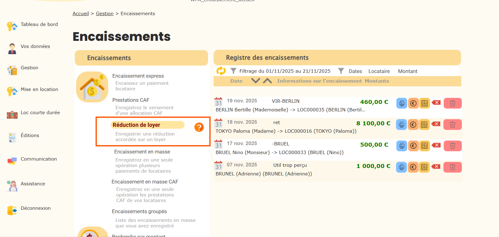 2. Lorsque le locataire est créditeur : saisir une réduction de loyer