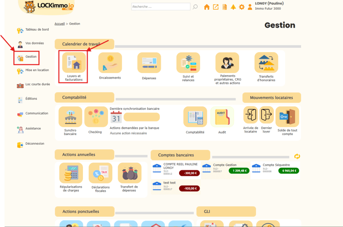Accédez au menu Gestion, puis cliquez sur Loyers et facturations.