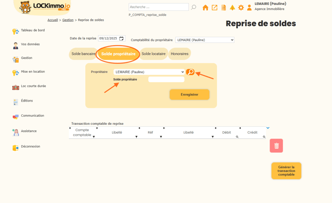 La reprise de solde propriétaire est une fonctionnalité essentielle pour gérer correctement la comptabilité de vos propriétaires dans votre logiciel de gestion. Elle permet de reprendre les anciens soldes, qu’ils soient débiteurs ou créditeurs, afin de refléter fidèlement la situation comptable de chaque propriétaire.