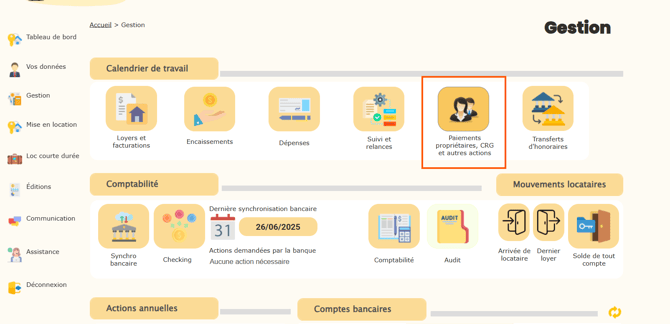 Étape 1 : Accéder au menu des paiements propriétaires