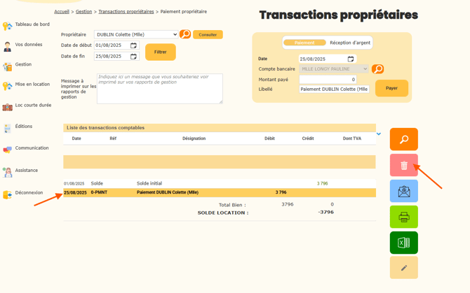 Comment supprimer un paiement propriétaire?