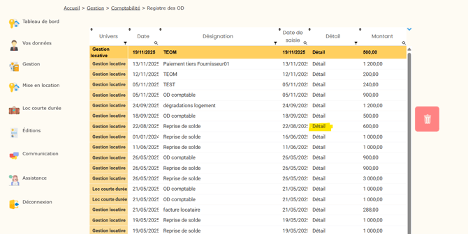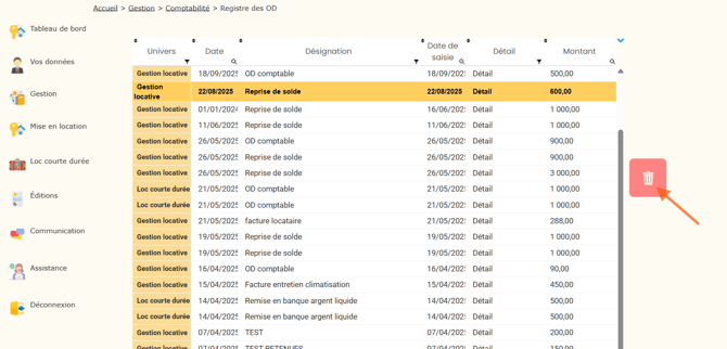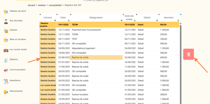La maîtrise de la suppression des reprises de soldes est essentielle pour maintenir une comptabilité saine et précise sur LOCKimmo. Qu'il s'agisse d'une opération diverse (OD) ou d'une facture générée dans votre registre, veillez à toujours vérifier le détail de l'écriture avant sa suppression définitive afin de garantir la cohérence de vos soldes locataires.