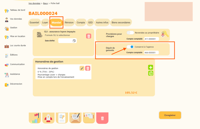 👉 Cette action permet d’indiquer dans le bail que le dépôt de garantie doit être transféré au propriétaire, et non conservé en gestion.