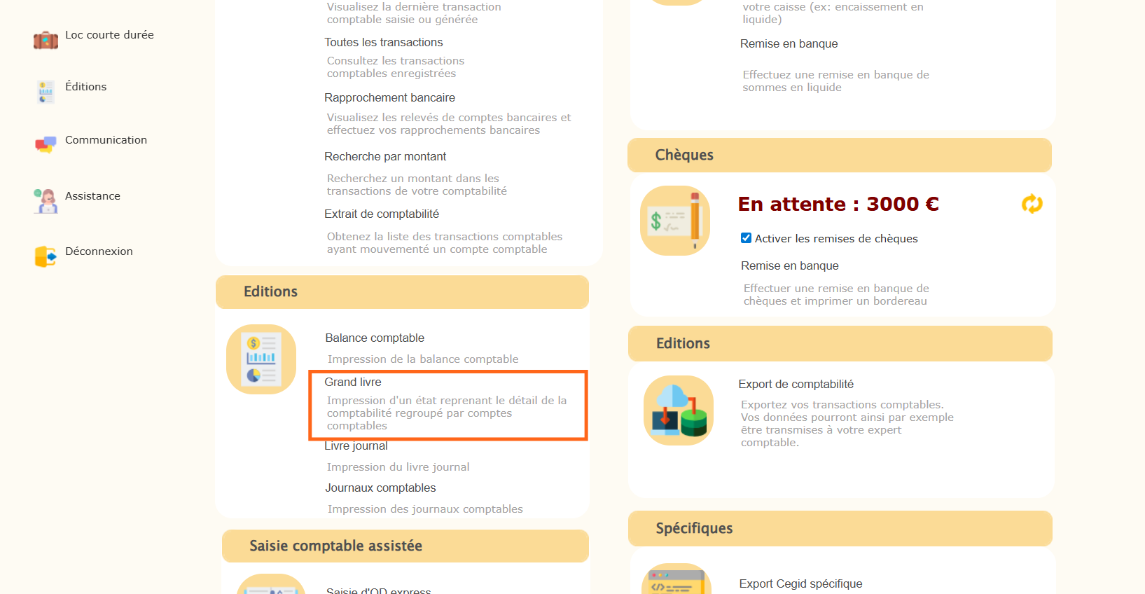 Le Grand Livre est un document comptable essentiel qui regroupe l’ensemble des écritures comptables de votre société ou de vos biens gérés. Il permet de :
