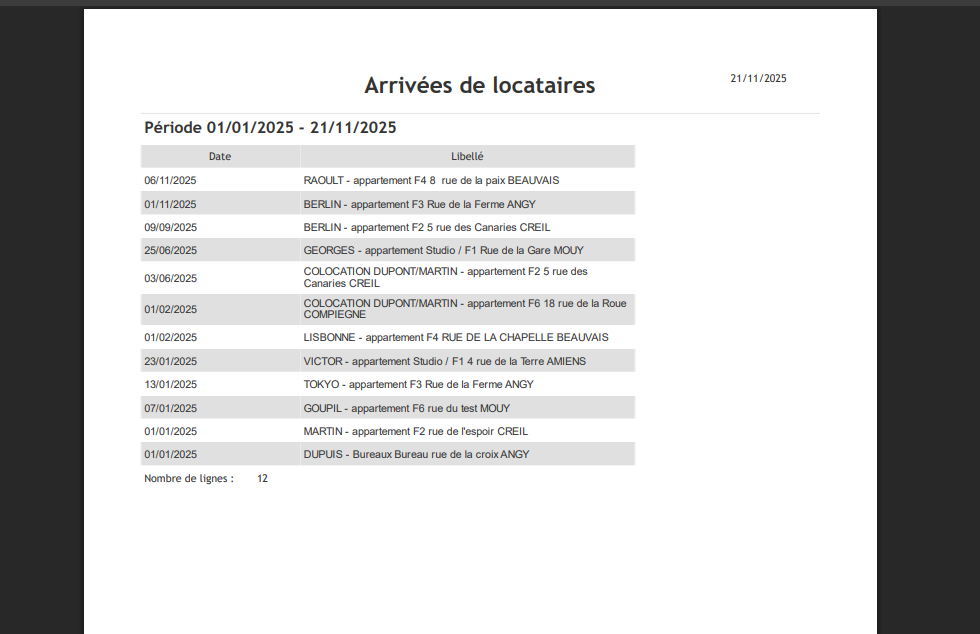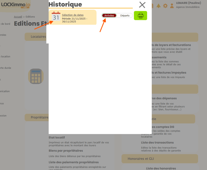 2. Exporter ou imprimer la liste des arrivées ou des départs de locataires.