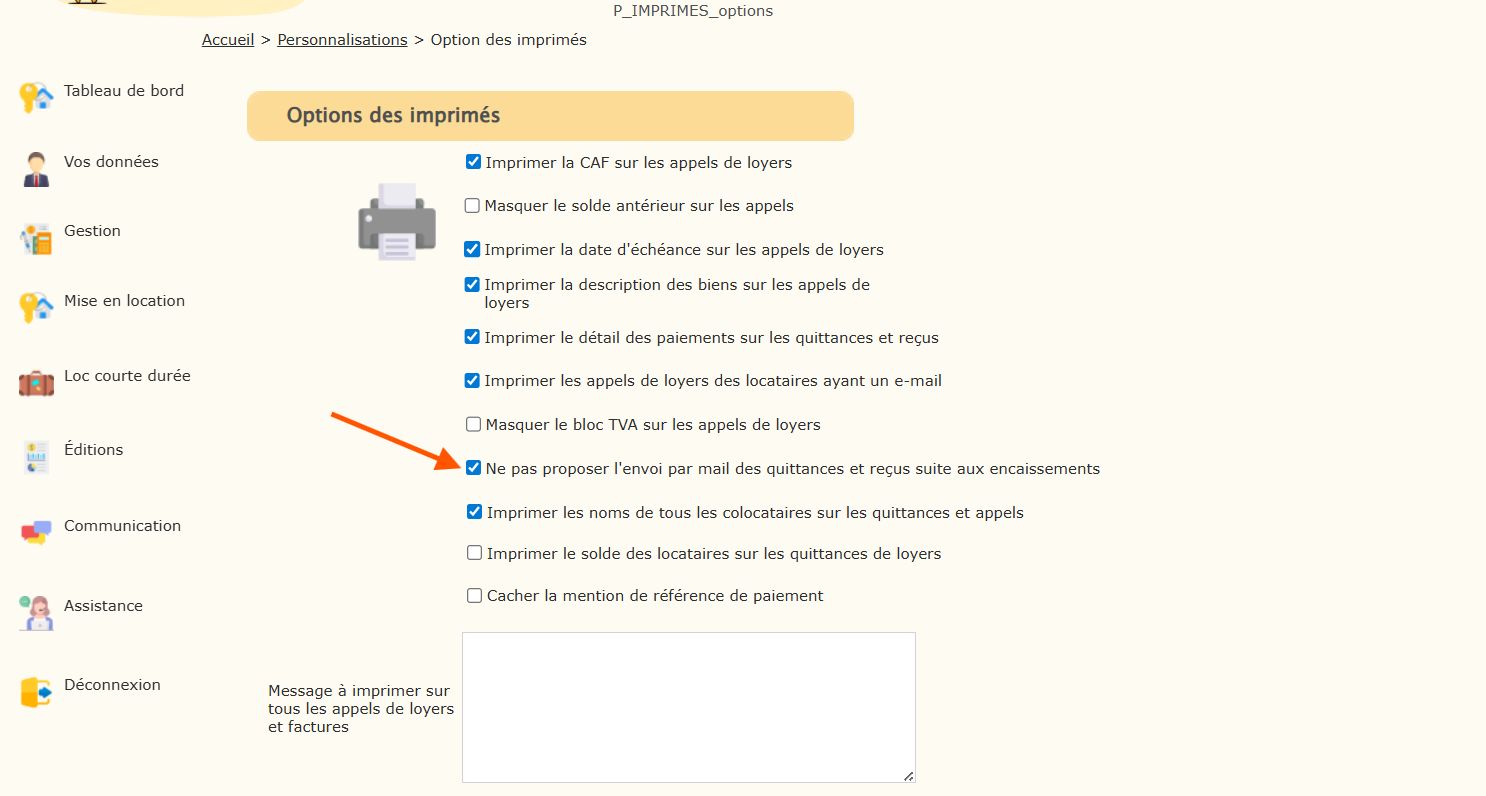 Une fois cette option activée, les quittances ne seront plus envoyées automatiquement aux locataires après chaque encaissement.