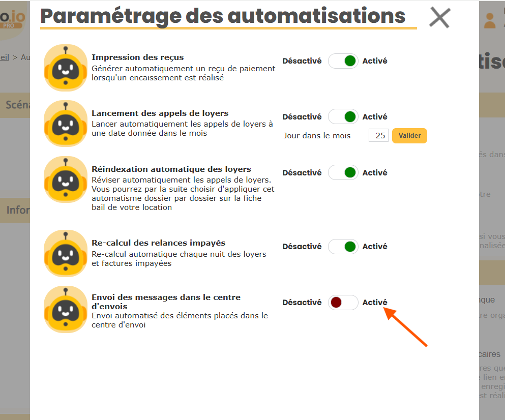 Enfin, il est possible de désactiver l’envoi automatique des quittances à un niveau plus global, en intervenant directement sur les paramètres d’automatisation de votre système.