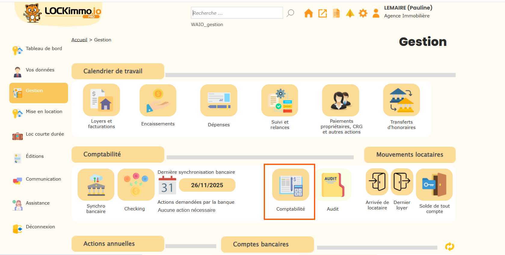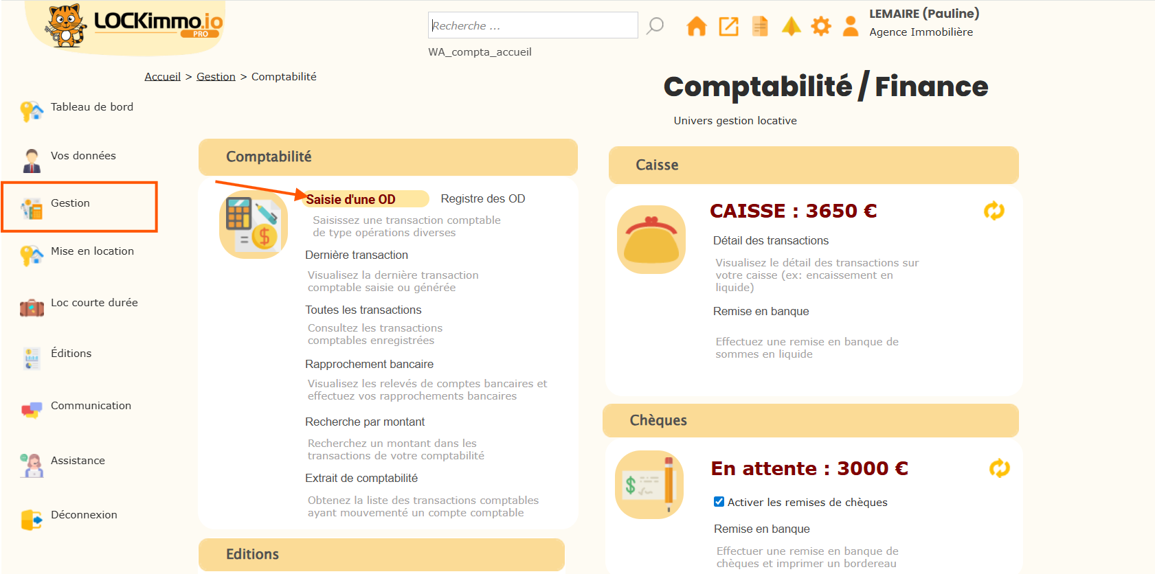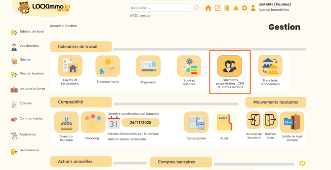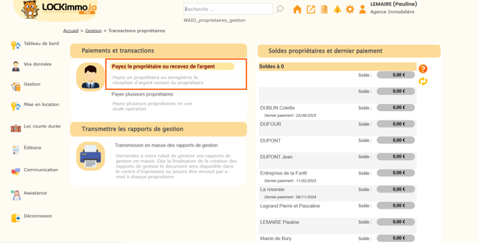 Cette étape permet d’accéder à toutes les opérations financières liées aux paiements entrants ou sortants concernant les propriétaires.