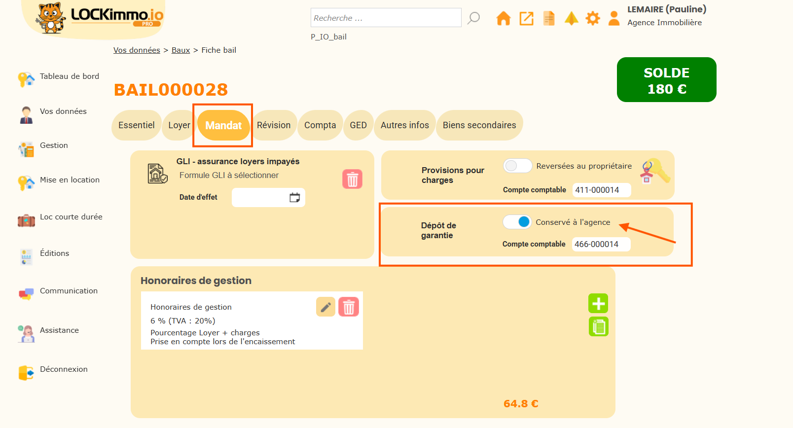 Rendez-vous dans l’onglet Mandat de la fiche bail.
