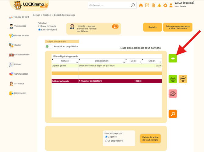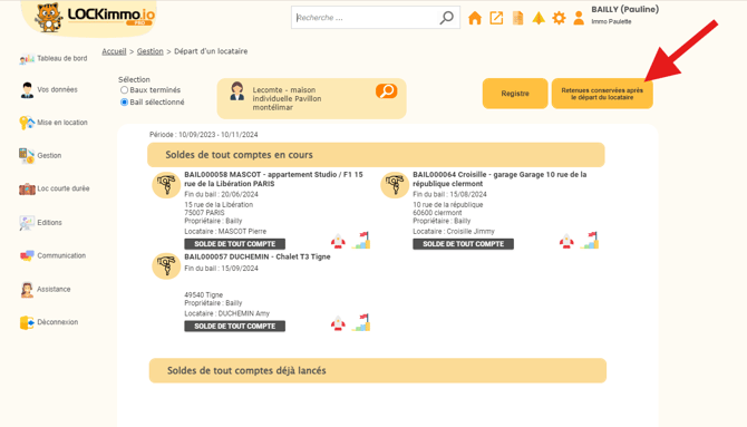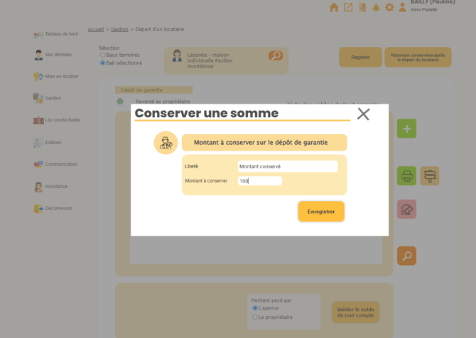 3 : Pour utiliser ce montant conservé, il vous faudra cliquer sur le bouton « Retenue conservée après départ du locataire ».