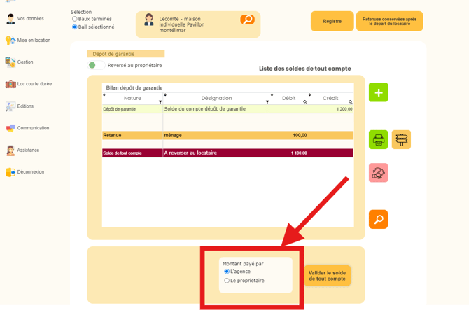 Une fois le solde de tout compte finalisé, assurez-vous que les montants enregistrés correspondent aux écritures comptables du locataire et du propriétaire.