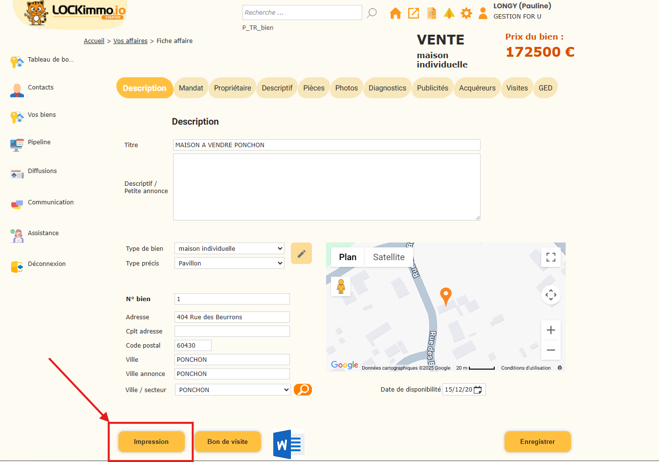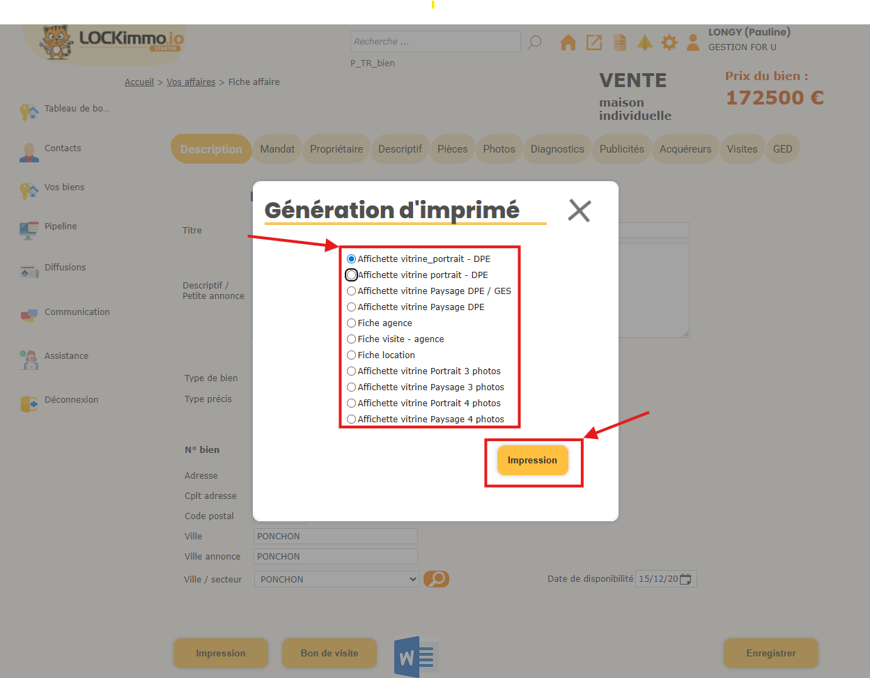 3. Où générer les affiches vitrines dans LOCKimmo ?